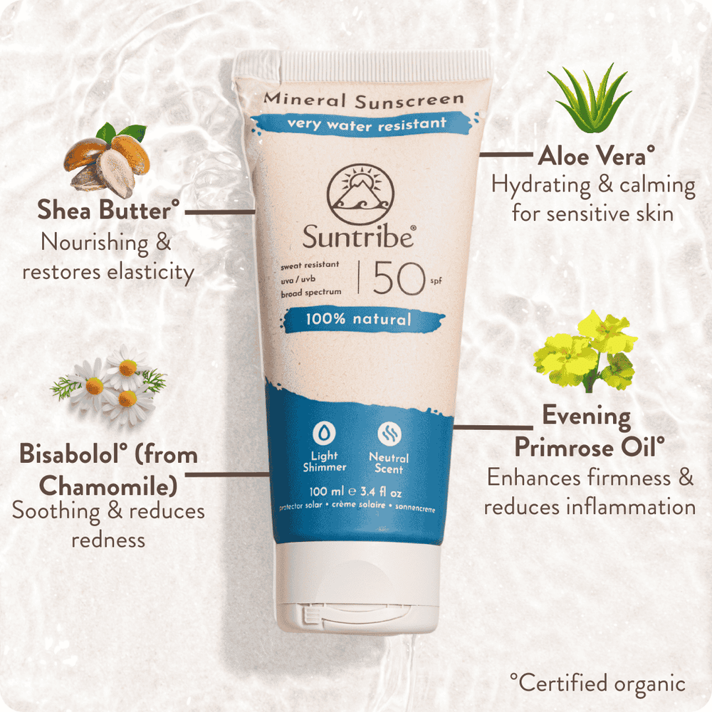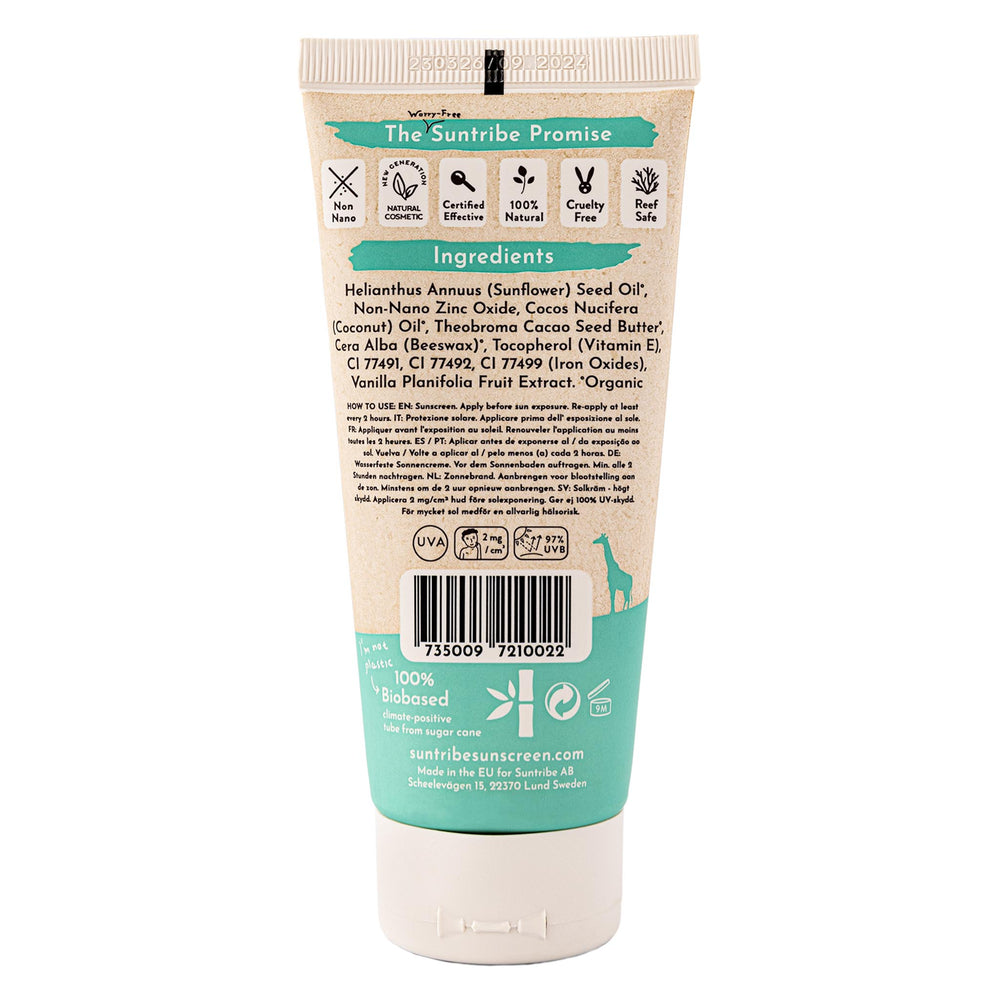 Suntribe create sunscreen and skincare for watersports with only proven safe ingredients. Suntribe cosmetics are made from 100% organic oils, waxes, butters and natural minerals. Safe for your skin and the ocean. Their 100% free from synthetic chemicals sunscreen is tested by surfers. In extreme weather conditions, on various skin types in the biggest waves. So you know this natural zinc sunscreen works. Our 3 boys love it because the kids' version smells like chocolate!