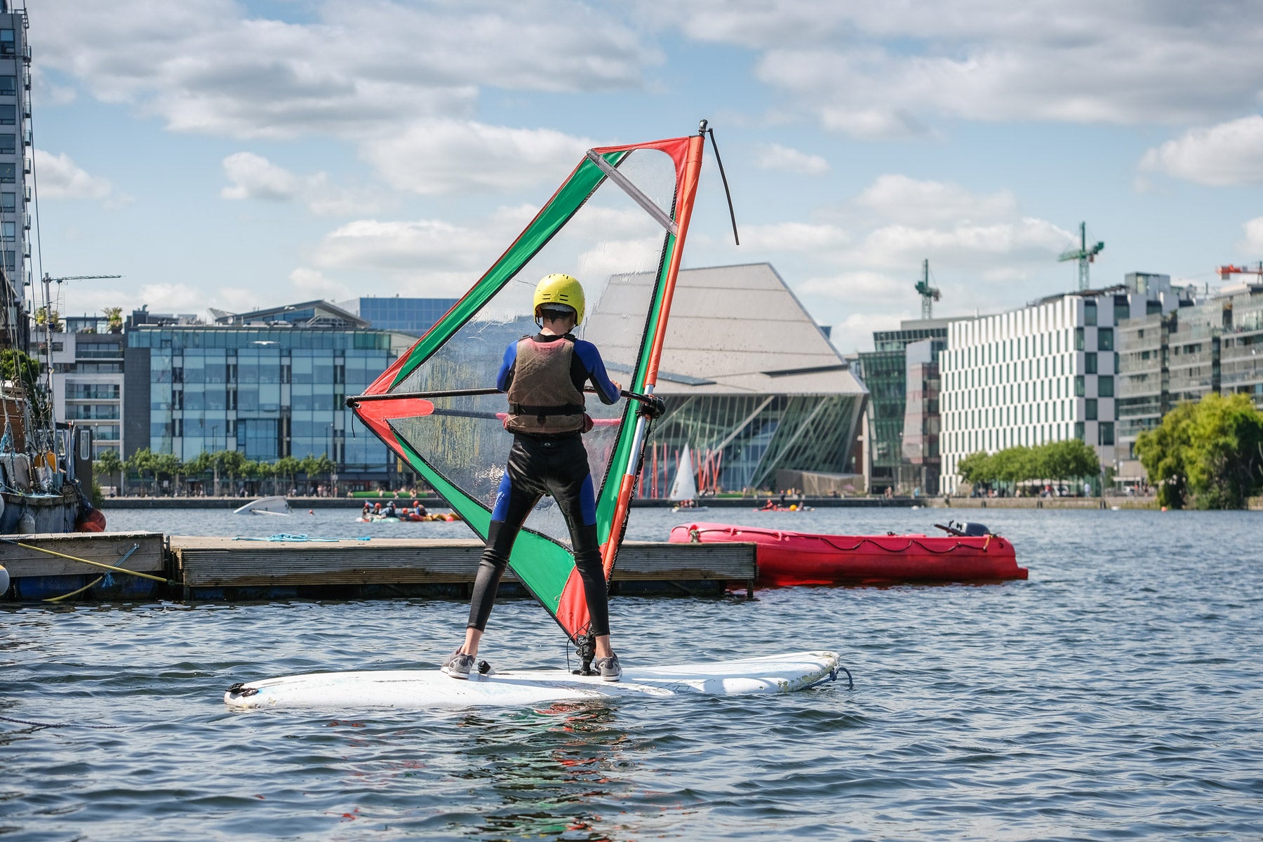 The sheltered surroundings of the Grand Canal Dock are the perfect playground for beginner watersports. We teach adults and kids stand up paddleboarding, windsurfing and wingsurfing giving you the knowledge and guidance to become confident and independent in your chosen sport. Open water SUP classes are available, too.